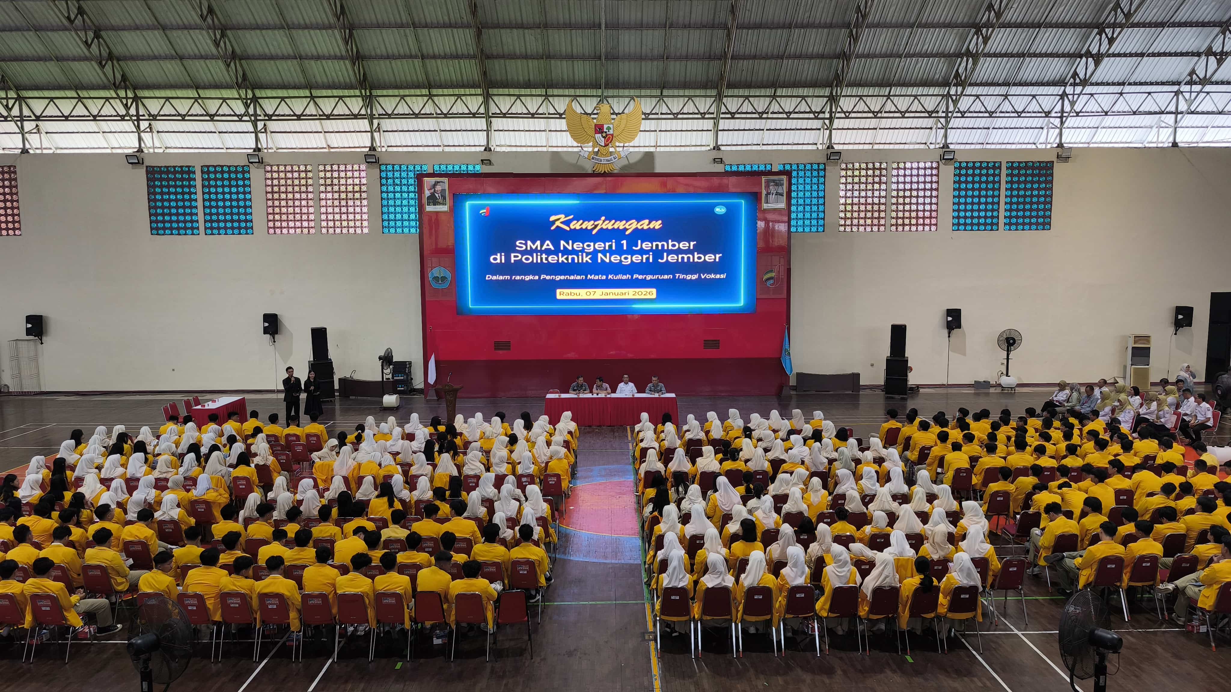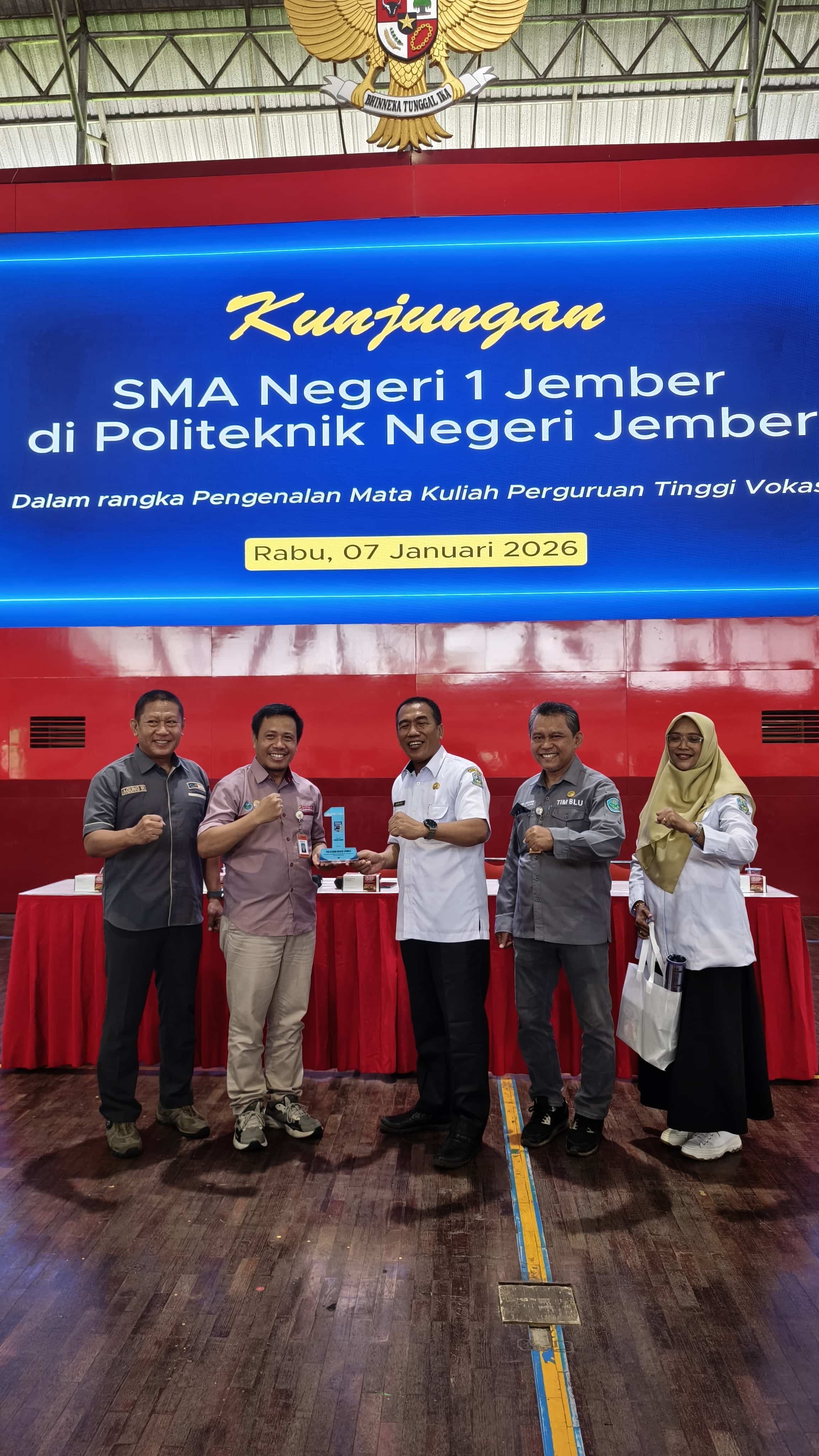 Rabu, 7 Januari 2026, SMAN 1 Jember melaksanakan kunjungan edukatif ke Politeknik Negeri Jember (Polije) dalam rangka pengenalan mata kuliah dan sistem pembelajaran di perguruan tinggi vokasi.