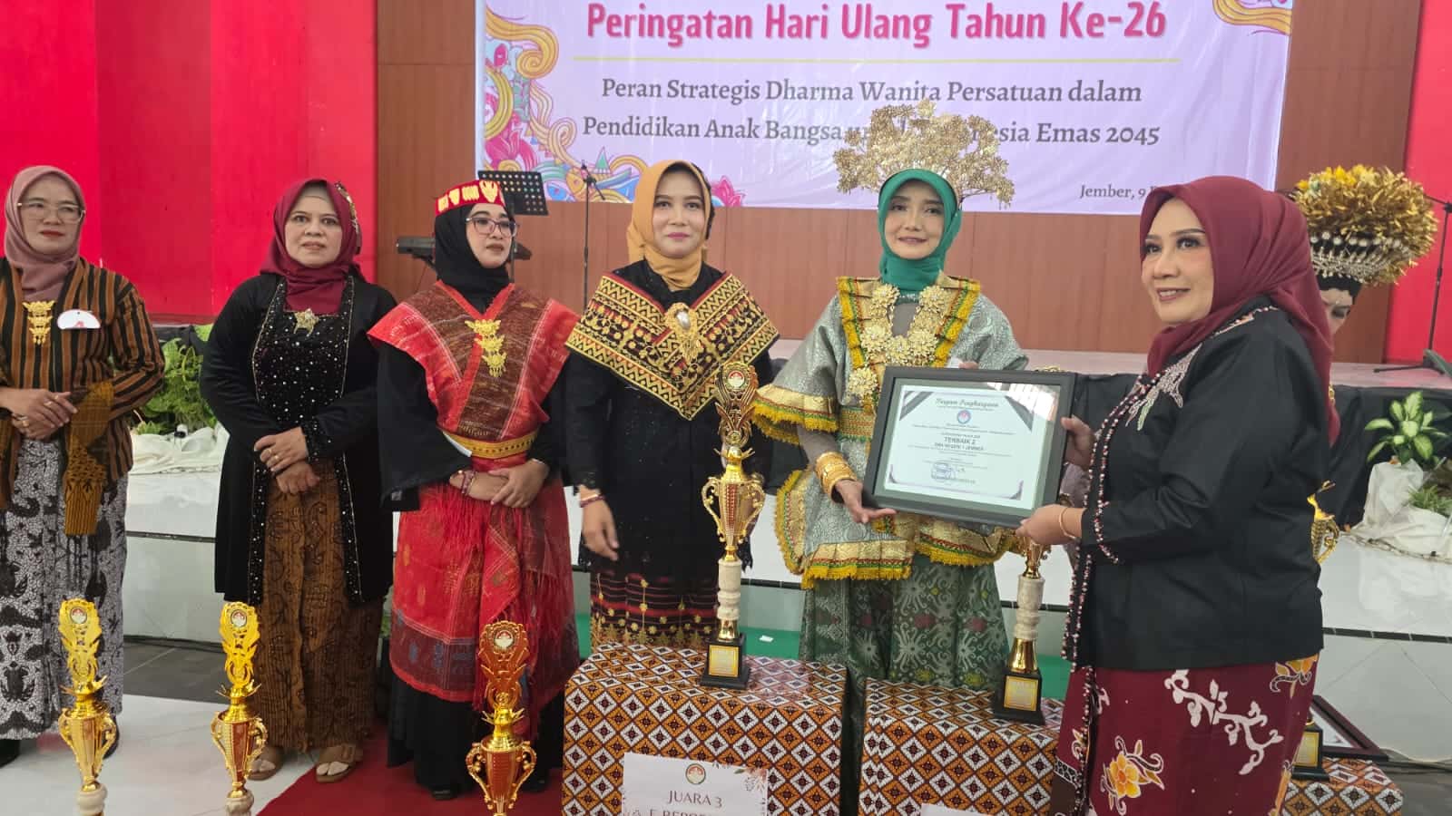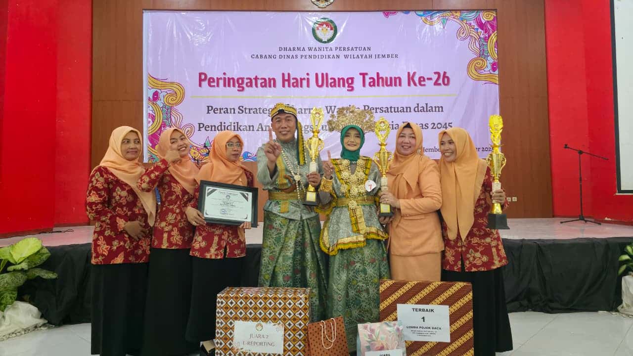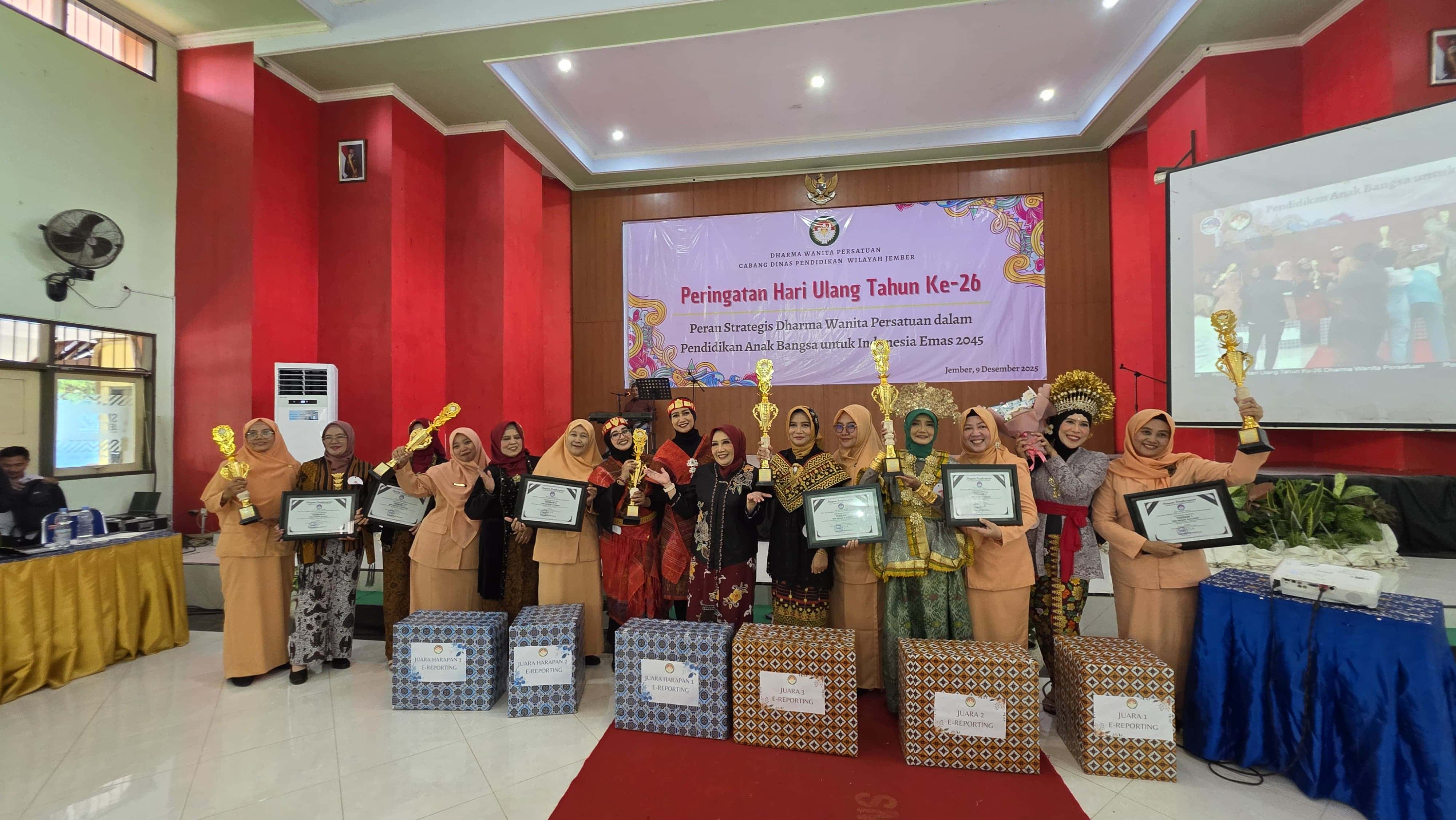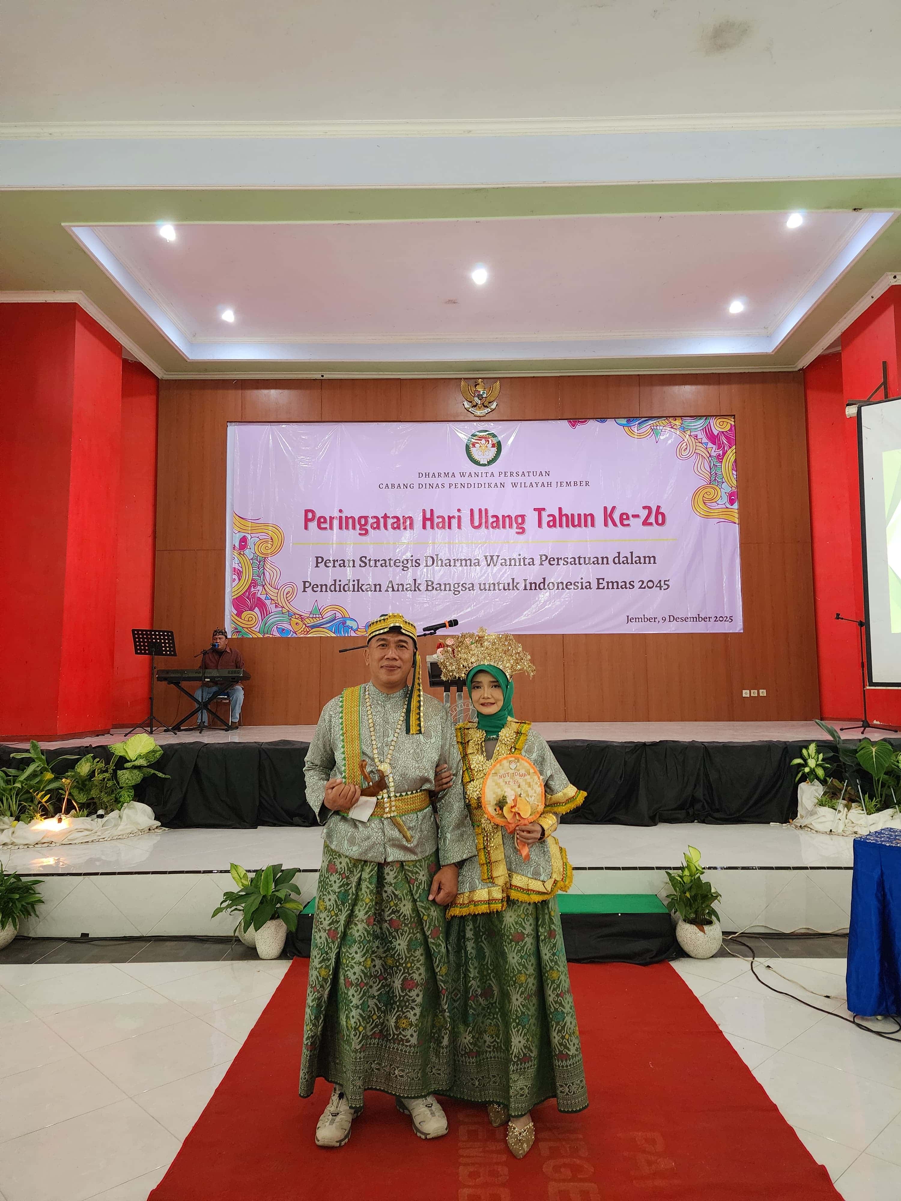 Jember, Selasa, 9 Desember 2025 — Dalam rangka memperingati Hari Ulang Tahun (HUT) Dharma Wanita Persatuan (DWP) ke-26, Dharma Wanita Persatuan Cabang Dinas Pendidikan Wilayah Jember, Kabupaten Jember, menggelar perayaan meriah yang diisi dengan berbagai penampilan seni serta perlombaan kreatif.