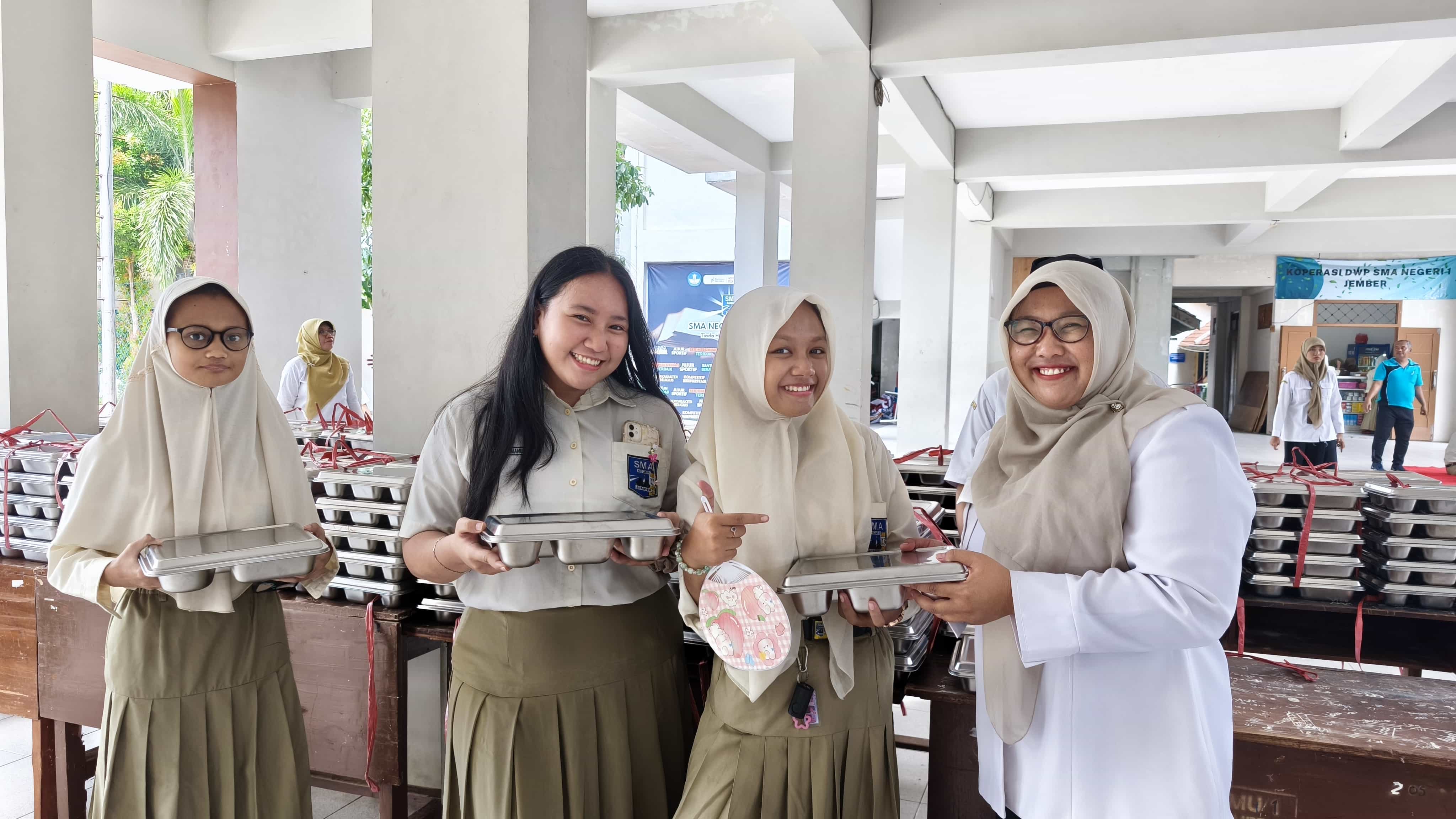 Pelaksanaan MBG di SMA Negeri 1 Jember berjalan lancar dan penuh semangat. Kegiatan ini diharapkan menjadi langkah nyata dalam mewujudkan generasi muda Indonesia yang sehat, cerdas, dan berkarakter.