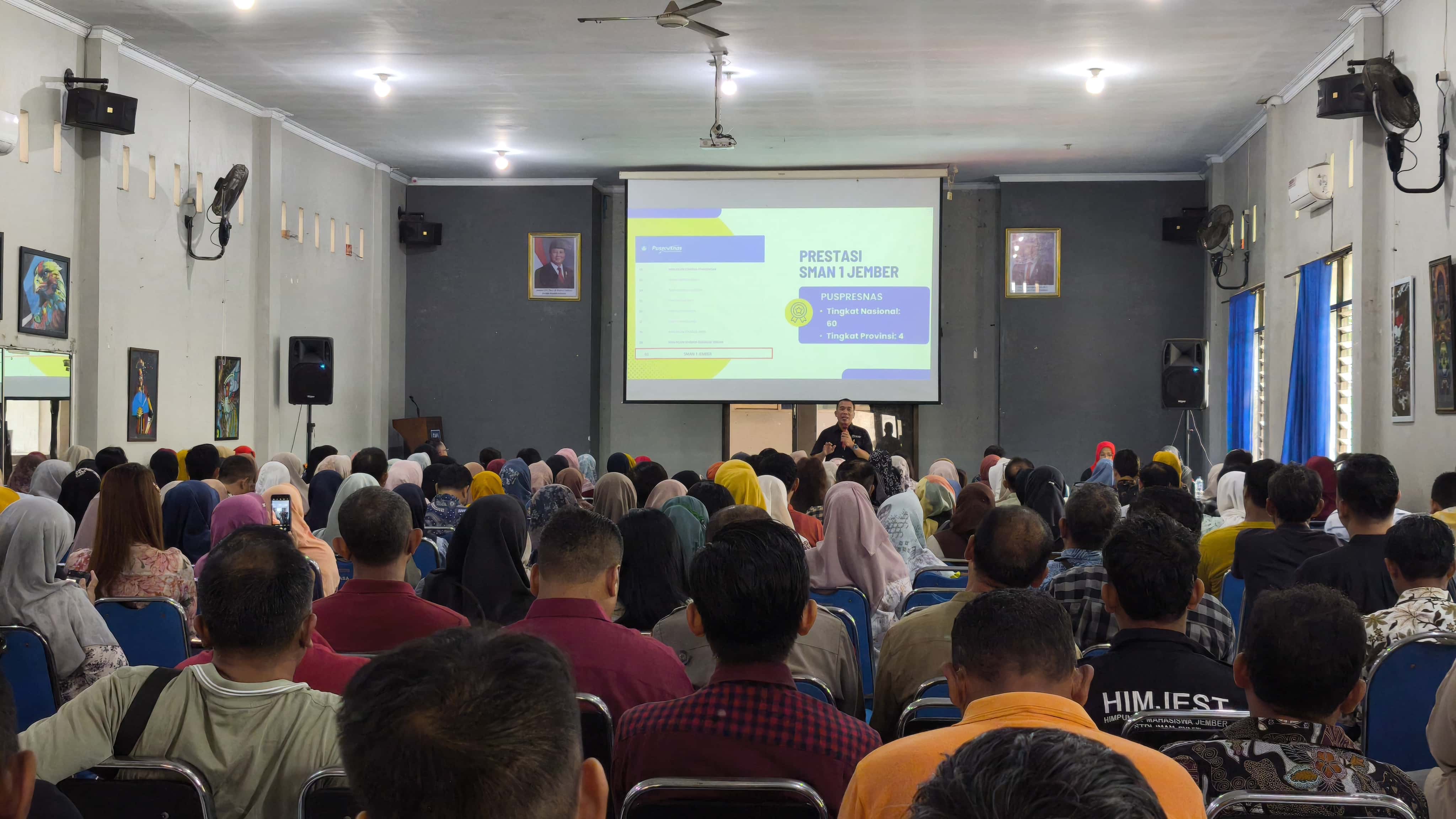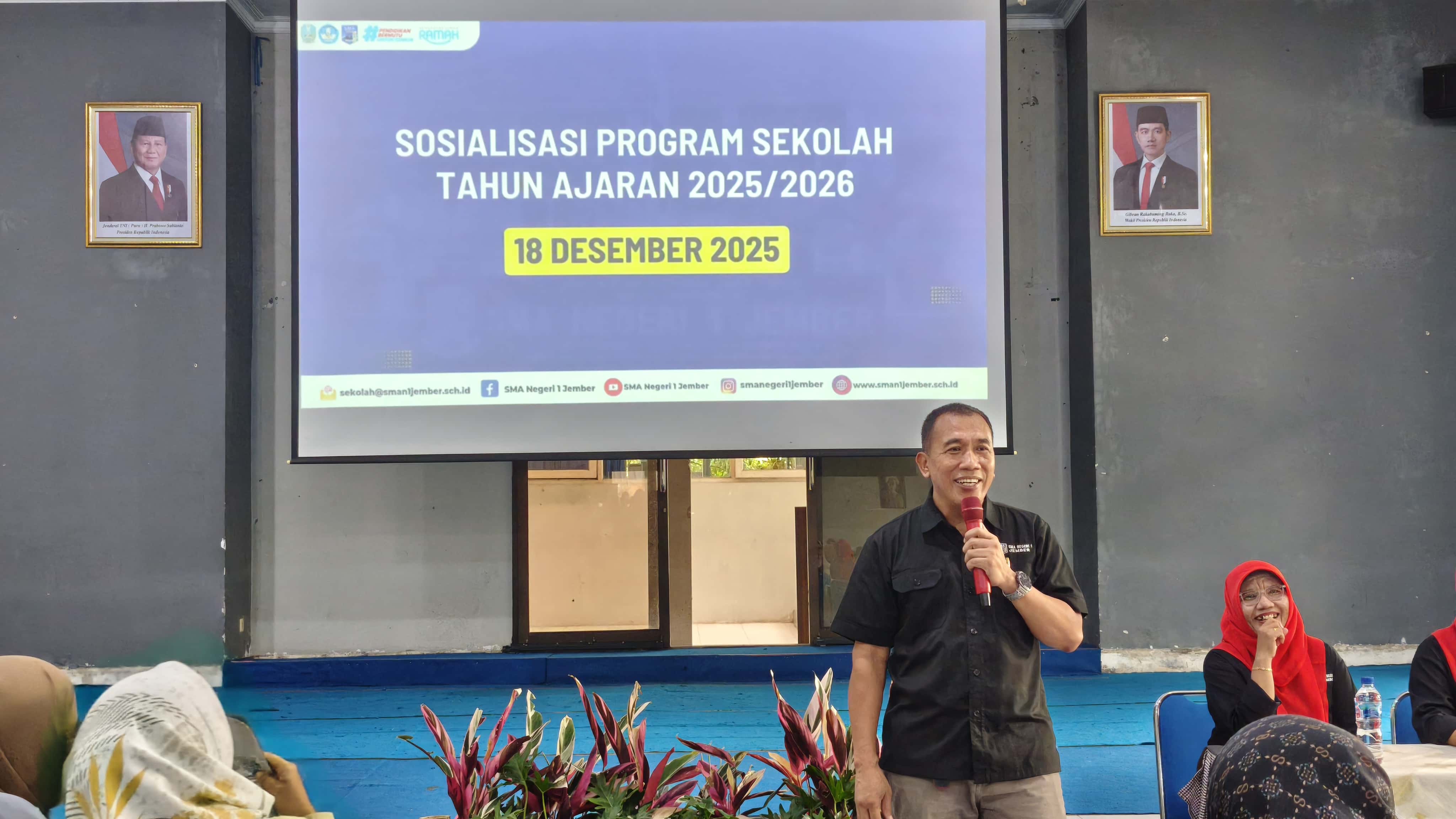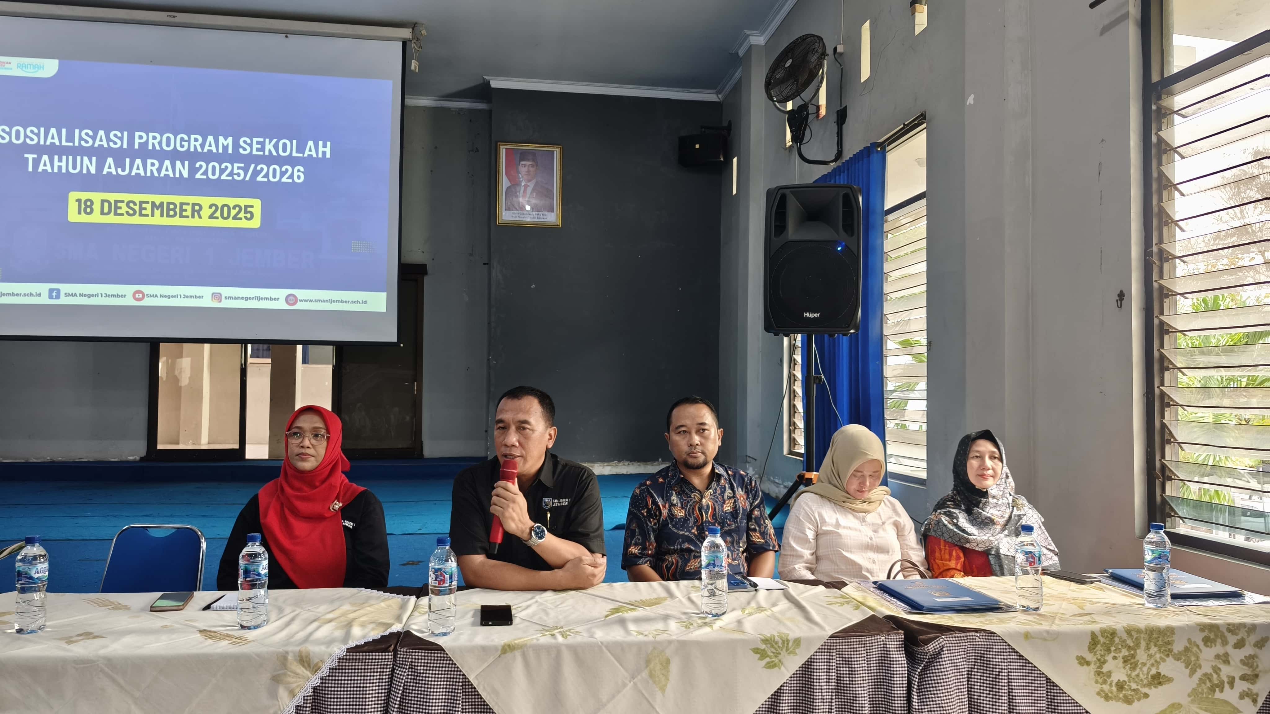 Kegiatan sosialisasi dipimpin langsung oleh Kepala SMA Negeri 1 Jember, Dr. Suryadi, S.Pd., M.Pd. Dalam sambutannya, beliau menegaskan pentingnya peran sinergis antara sekolah dan orang tua dalam mendukung perkembangan akademik maupun nonakademik peserta didik.