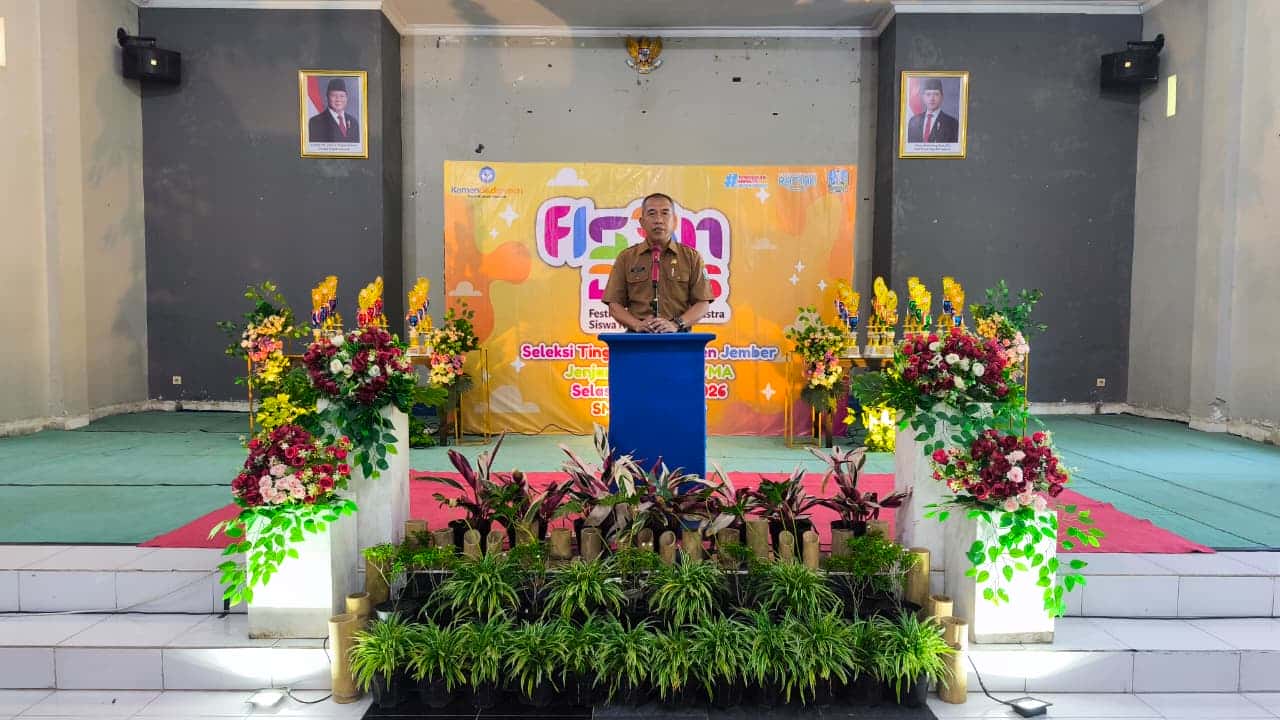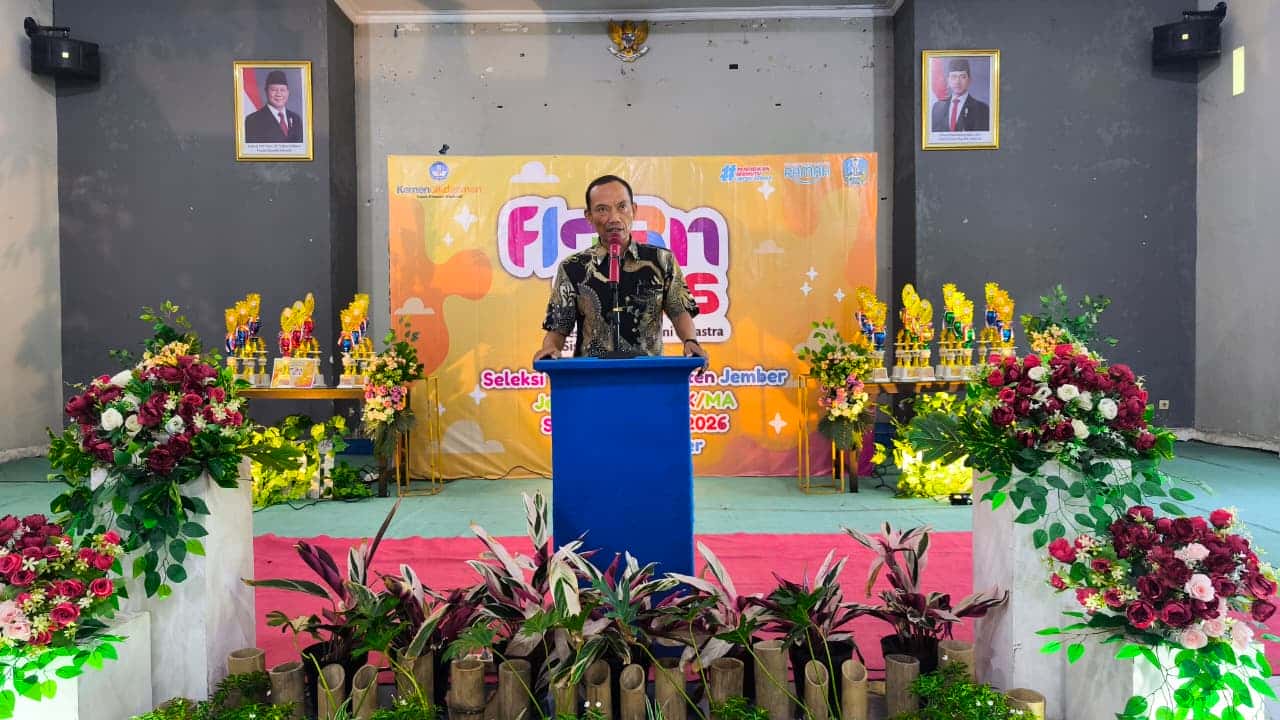 Selasa, 28 April 2026 menjadi momen penuh semangat dan kreativitas di Aula Jarkasi SMA Negeri 1 Jember. Kegiatan Festival Lomba Seni dan Sastra Siswa Nasional (FLS3N) Tahun 2026 resmi dibuka dengan khidmat oleh Ketua MKKS yang juga merupakan Kepala SMA Negeri 1 Jember.