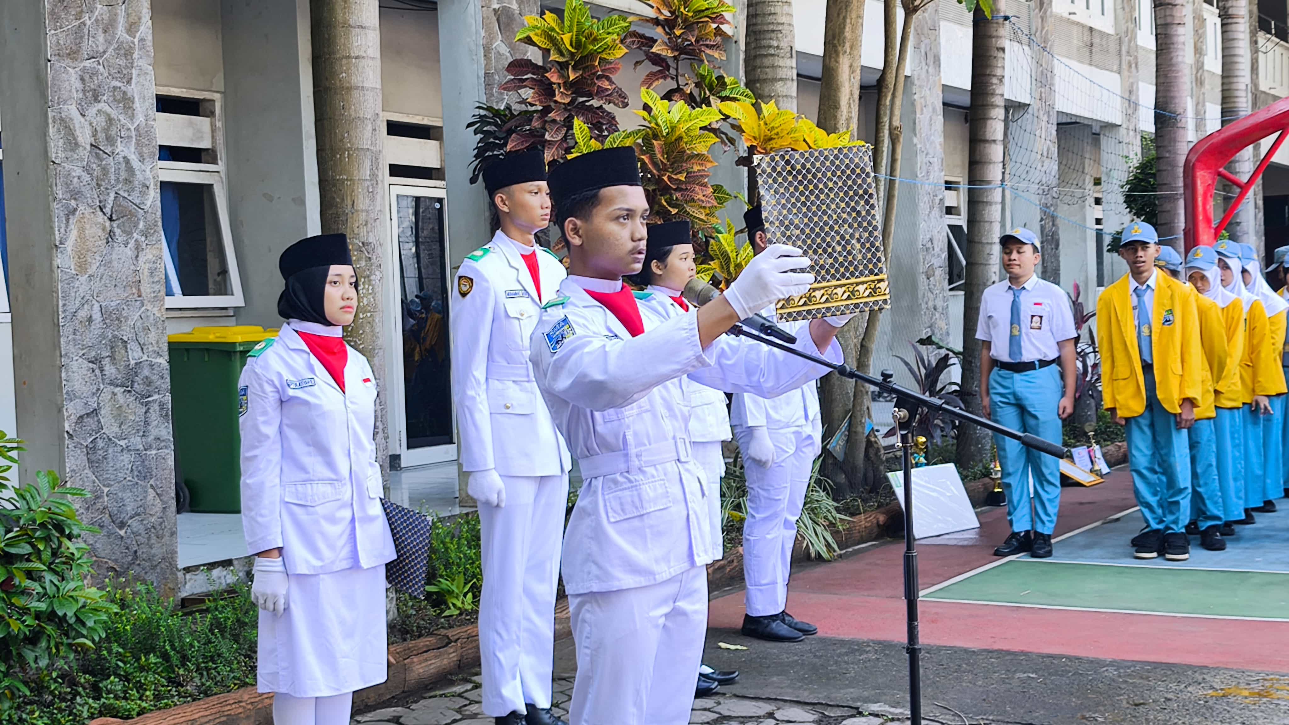 Bertindak sebagai pembina upacara, yaitu Bapak R. Slamet Agus Wahyudi, S.Sos., yang dalam amanatnya menyampaikan pentingnya semangat persatuan dan peran generasi muda dalam menjaga keutuhan bangsa. Beliau juga menegaskan bahwa nilai-nilai perjuangan pemuda harus terus dijaga dan diimplementasikan dalam kehidupan sehari-hari, khususnya di lingkungan sekolah.